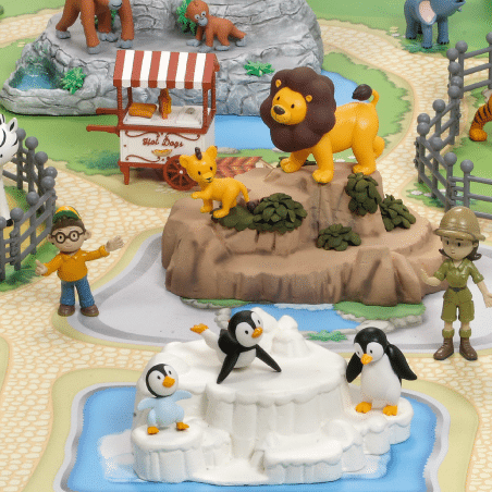 Completa la collezione dei tuoi animali dello zoo con questo gruppo di felini, noti per la loro agilità e furtività. Divertiti con l’imponente tigre, il suo giocoso cucciolo, la leonessa protettrice e la curiosa lince.